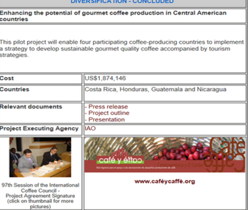 “Los representantes de México, Guatemala, Honduras, El Salvador, Honduras, Nicaragua, Costa Rica, Panamá, Perú, República Dominicana y Jamaica, en donde viven más de 5 millones de personas dedicados directamente a producir café, plantearon alternativas de solución para que sobreviva esa industria. En la reunión se instruyó a la Organización Internacional del Café (OIC) para que asuma un rol protagónico y activo en la búsqueda de soluciones, que sirva de enlace y facilitador entre los distintos actores que participan en la cadena de valor del grano aromático.” Lo cual demuestra indicios, pequeños pasos a una iniciativa de integración de la industria cafetalera mediante la OIC. Se evidencia que brinda es el espacio para dialogar temática relacionado al ello con el fin de enfrentar dicha problemática.