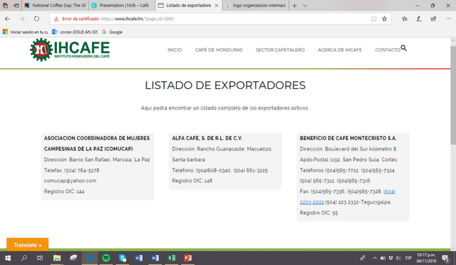 IHCAFE. http://www.prohonduras.hn/images/mosaicoexport/cafe.pdf