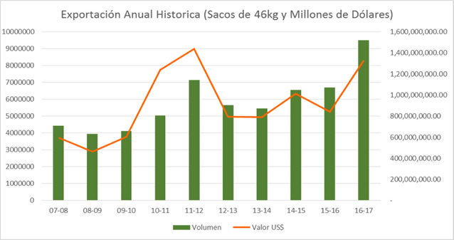 Ingresos por exportación del café