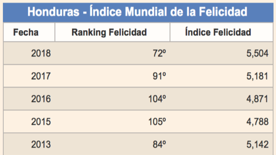 Honduras en el ranking de la felicidad año 2018