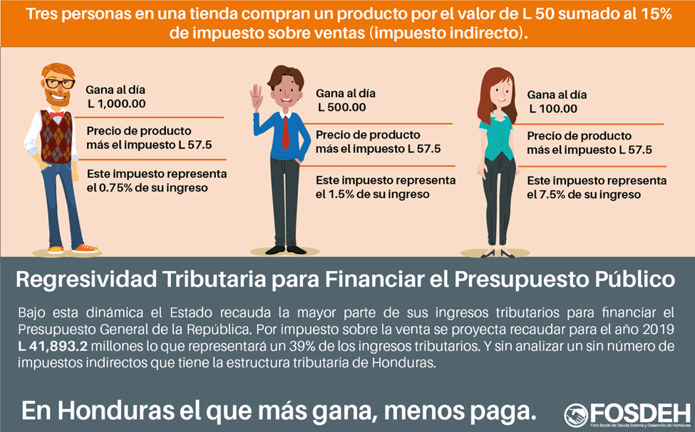 Según datos de FOSDEH, en Honduras existe una gran desigualdad respecto a las personas que pagan impuestos y las que no. ¿En que sentido? Se calcula que las personas con menos ingresos son las que mas impuestos pagar respecto a las ganancias que perciben.